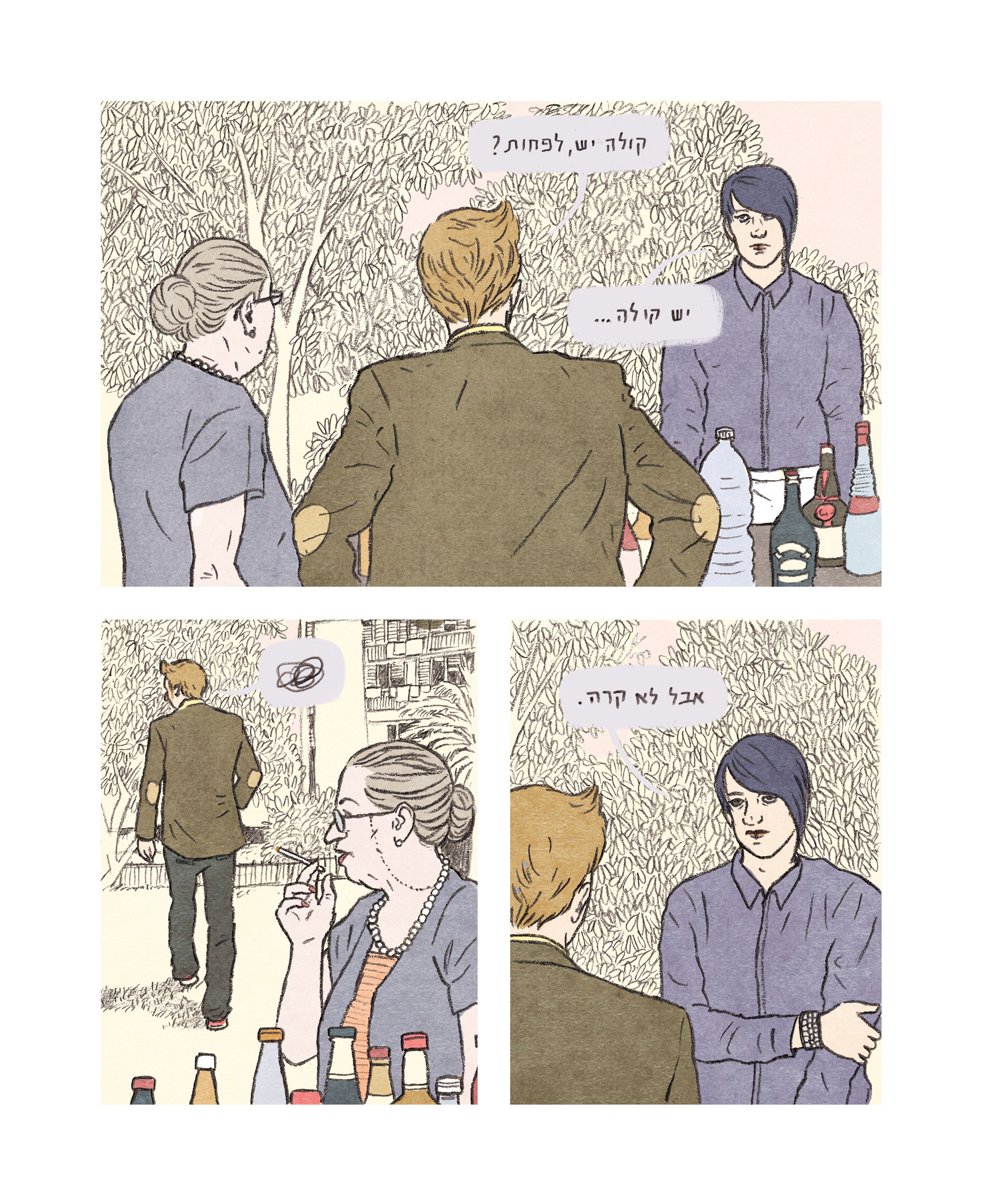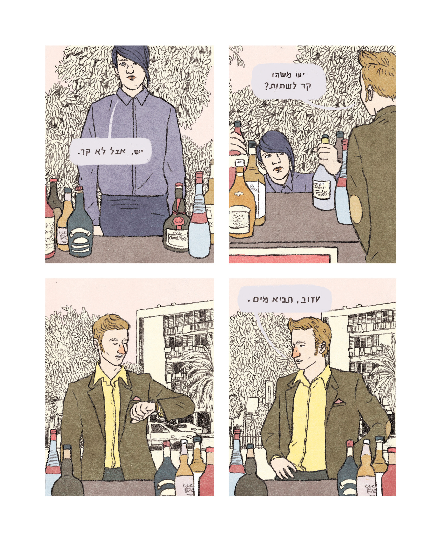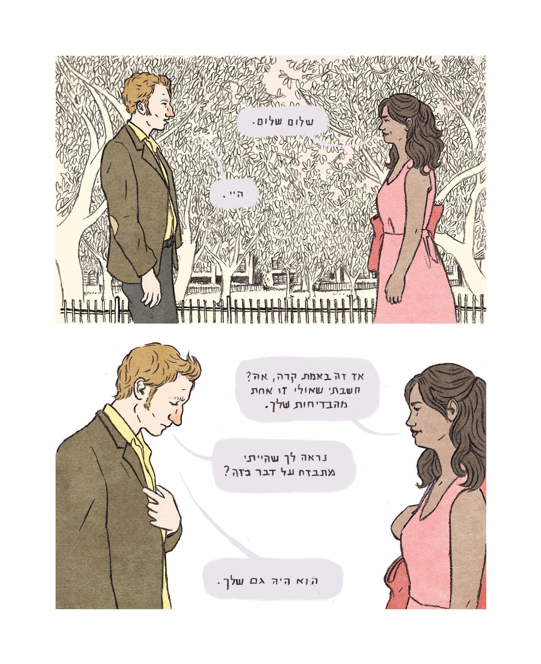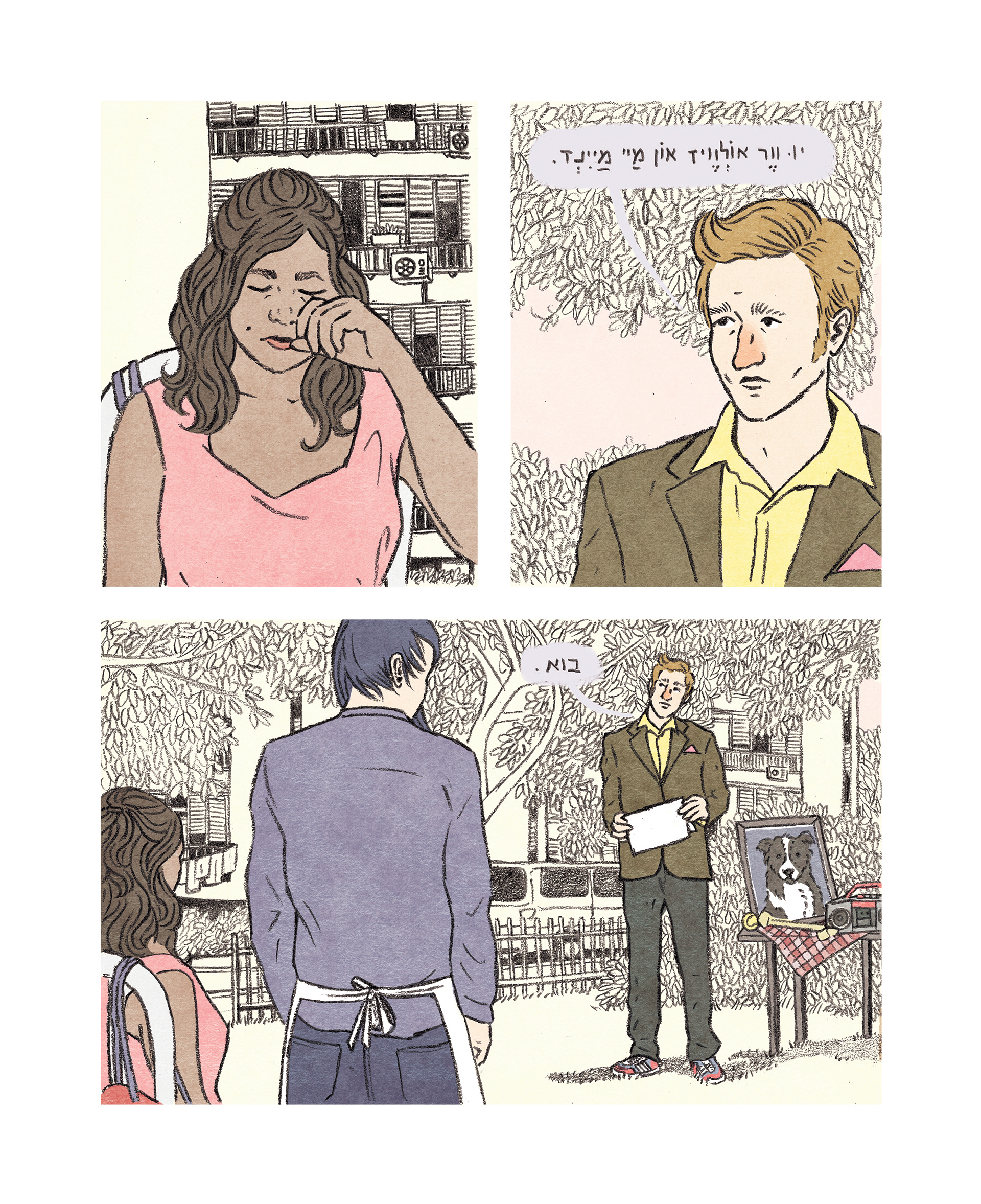 A few pages from the graphic novel, based on a script by Brit Harel.