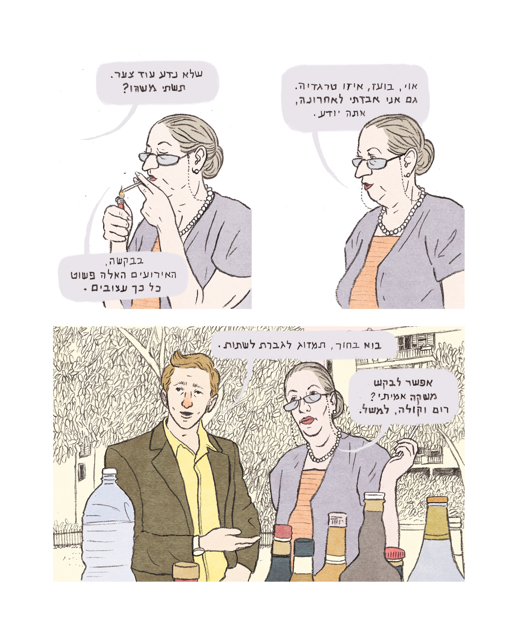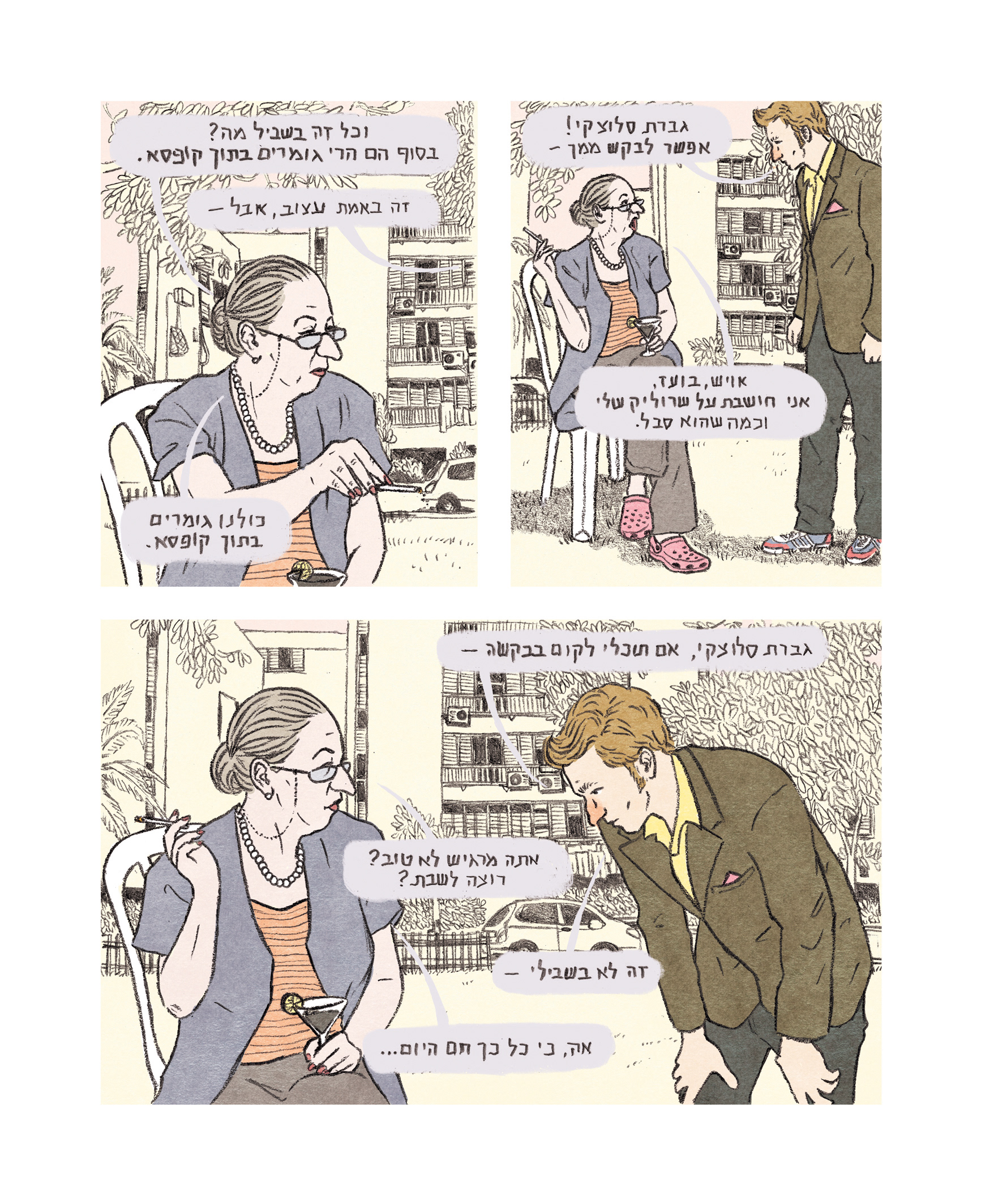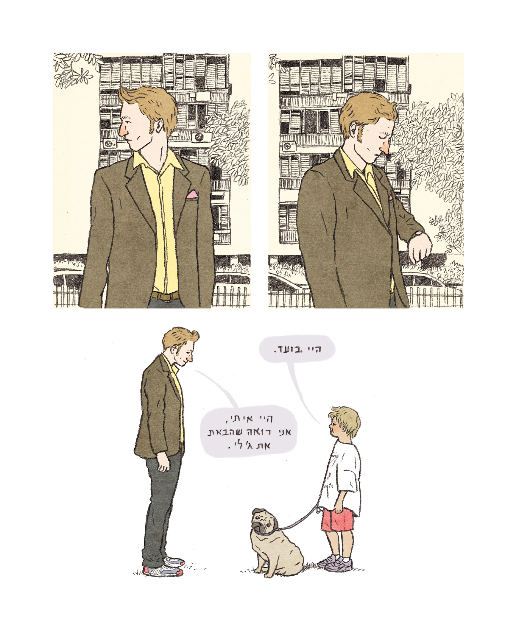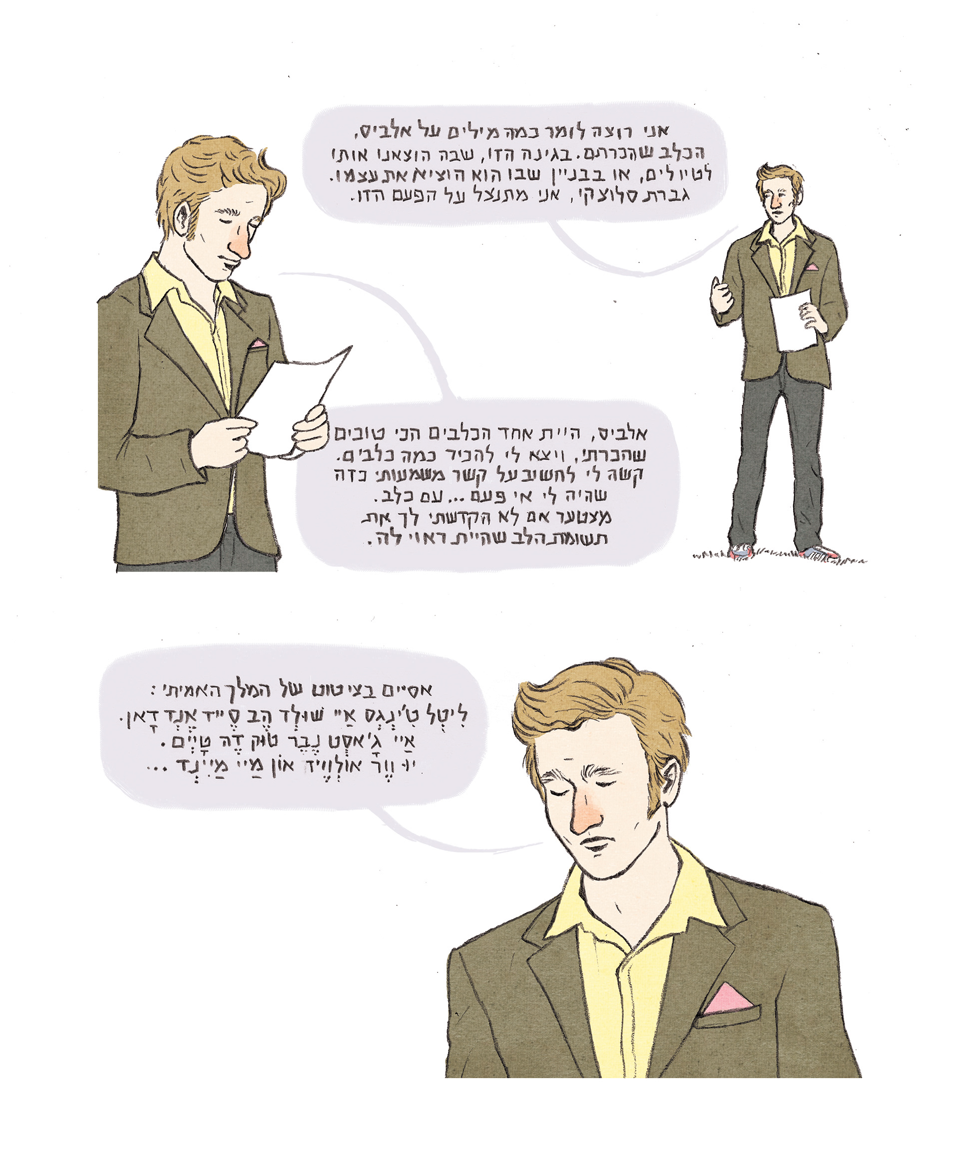 A few pages from the graphic novel, based on a script by Brit Harel.