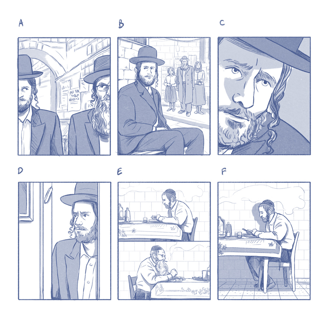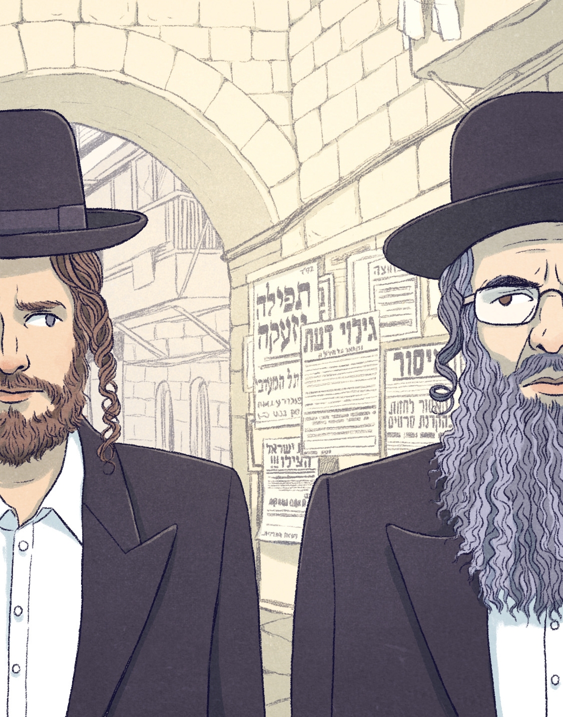 Illustration for a review of 'Shtisel' on Netflix, by Alexandra Schwartz.